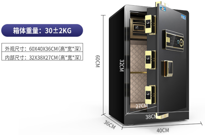 商品名稱:虎牌博瑞60商品毛重:28.88kg商品產(chǎn)地:中國大陸開鎖方式:密碼,指紋,鑰匙顯示屏:LED觸摸屏控制報警方式:蜂鳴器報警執(zhí)行標(biāo)準(zhǔn):企業(yè)標(biāo)準(zhǔn)應(yīng)急開啟:主鑰匙+應(yīng)急鑰匙凈重:16-30kg門板形式:復(fù)合開門方式:手動開門箱體厚度:4mm以下箱體高度:45-60cm門型:單開門門板厚度:2mm以下主機(jī)械鑰匙:有,非必須使用